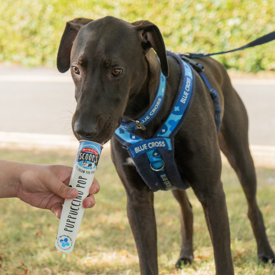 But that’s not all! This treat comes with a heart-warming twist. We’ve partnered with the incredible team at Blue Cross, a charity that’s been helping pets find loving homes for over 125 years. For every Puppuccino Pop sold, we’ll be donating to Blue Cross to support their amazing work with pets in need. That means every happy tail wag, every delighted lick, is helping another furry friend on their journey to a forever home.