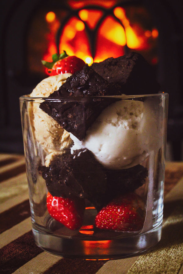 - Break your brownie into chunks and begin to layer the pieces in your serving glass. As you work up your glass, add your fresh fruit and scoop in your ice cream flavours. Repeat this process until you have used all your ingredients