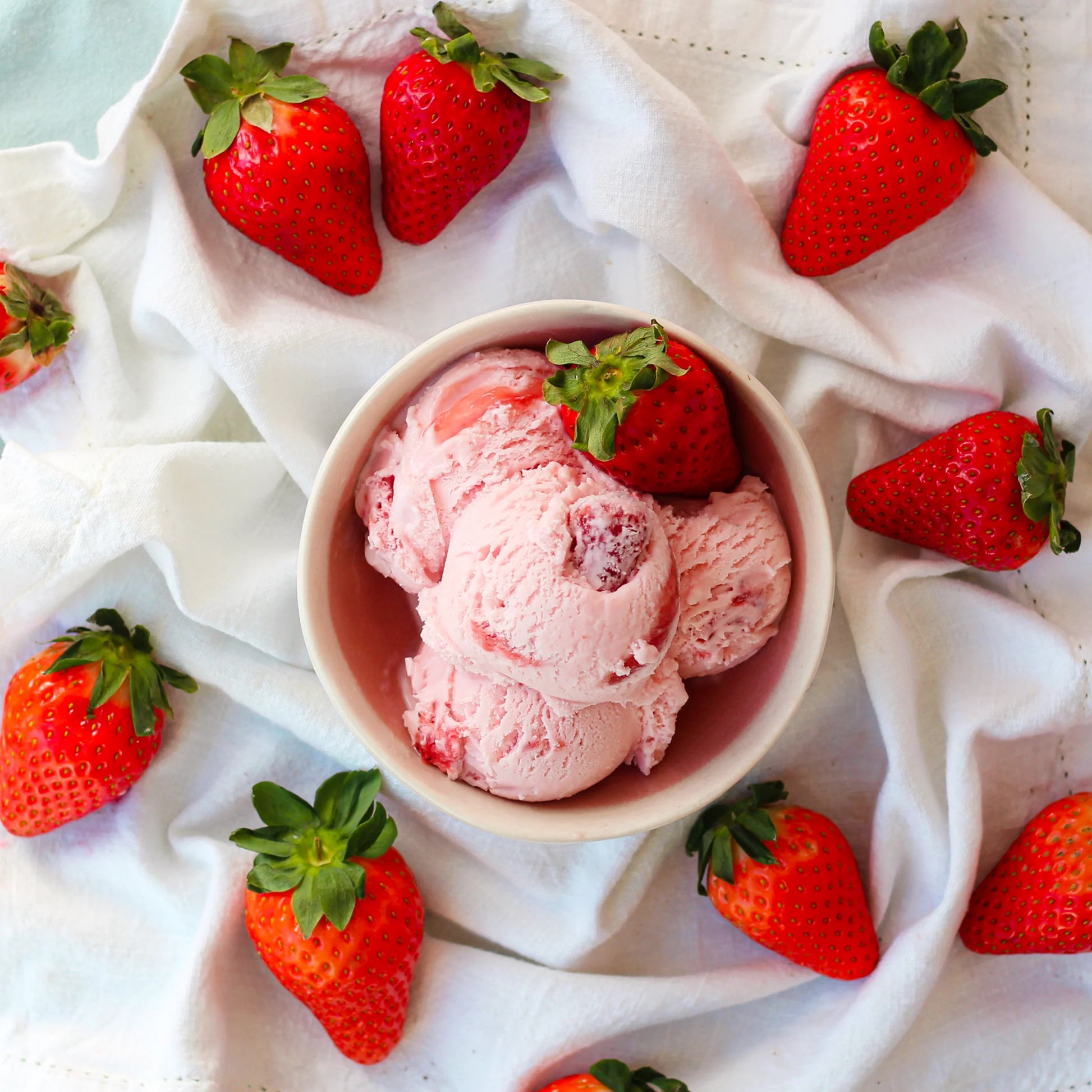 60% fresh milk from our cows, lots of local double cream, and more fresh strawberries than most other ice cream companies a massive half a ton of strawberries per mix! That means you get lots of chunks of real fresh strawberries in every tub to be precise 15% of every tub of strawberry ice cream is strawberry pieces & strawberry ripple.